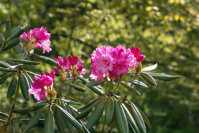 Нарядно и эффектно цветёт рододендрон,при этом,у него множество сортов с цветами разных окрасов ,размеров