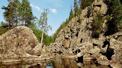 Непопулярное место Один из многих заливчиков Уницкой губы в Онежском озере... Берега - неприступные, дно - мелкое и каменистое, рыбы нет, только окуньки-детсадовцы, которые фонтаном "брызжут" из-под заброшенного поплавка.... И только такие дикие туристы, которые плывут куда глаза глядят (лишь бы подальше!), случайно могут здесь оказаться.....  |