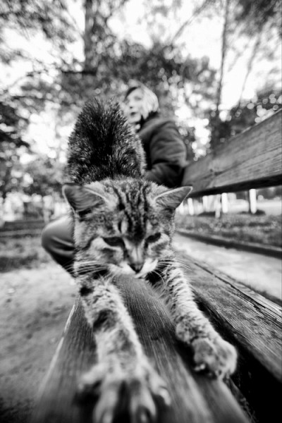 взрывная волна уже дошла до кота и он держится из последних сил женщина обернулась на звук, она напугана в следуещее мнгновение здесь вряд ли будет даже скамейка... |