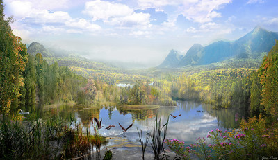 Красиво. Но много мельтешения на переднем плане. Теряется ощущение высоты. И высокие пучки травы явно лишние. Сильно мешают. Ещё бы чуток поработать ... )
