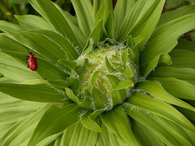 Опасная брошка. Лилия саранка готовится к цветению.. Треща́лка лиле́йная (лат. Lilioceris lilii) — насекомое семейства жуков-листоедов, питающихся листьями, почками, ст... ми и цветами лилий, рябчиков и других растений из семейства лилейных. |