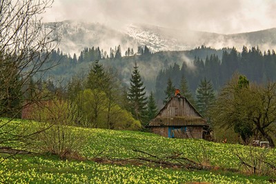 Весенний отпуск в Закарпатье. Лазещина. 4 мая 2019 года. Доживающий свой век домик с синими ставнями