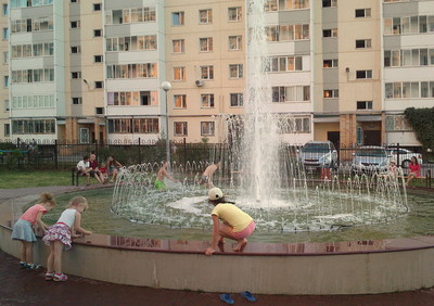 В теплый день, когда "работал" фонтан во дворе..