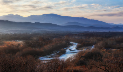 вид на реку Партизанская и Макаровский хребет.......Приморье
