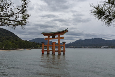 Тории - традиционные ритуальные ворота около японского острова Миядзима