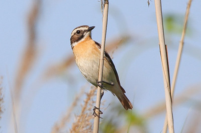 Ерчык лугавы Видеть чекана можно сидящим на высокой травинке, ветке куста или проводе ЛЭП; при беспокойстве можно слышать характерную позывку «туи-чек-чек», определившую русское название вида. Песня этой птицы негромкая, из сочетания скрипучих и флейтовых звуков; ее часто можно слышать днем - это, пожалуй, единственная из наших птиц, которая часто поет и в знойный летний полдень.Встречается на суходольных и заливных лугах, чаще на сильно увлажненных с редкими кустами и крупными высокостебельными растениями (таволга, зонтичные, щавель), а также в поймах рек, на низинных болотах, травянистых опушках лесов, у водоемов в открытом ландшафте, на лесных вырубках с обильной травянистой растительностью и невысокой кустарниковой порослью. Селится на зарастающих гарях, клеверных и люцерновых полях, осушенных и засеянных кормовыми травами торфяниках, в придорожных канавах, на пустырях, огородах и т. д. Густых высоких зарослей кустарников и полей с пропашными культурами избегает (на последних изредка отмечается) |