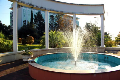 Сан."Изумруд" в Адлере. Много внимания на территории санатория уделяется благоустройству,озеленению - разбиты клумбы , работают фонтаны.