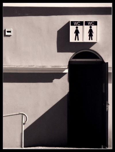 Мой урбанистический глаз давно уже мыслит шаблонами "мальчики направо, девочки налево"... А здесь получалось вроде как вместе... Ирония??