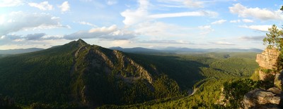 Вид с хребта Караташ на гору Малый Яматау и долину реки Малый Инзер.