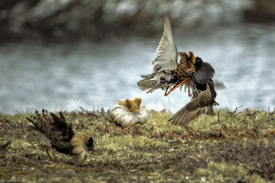 Но самое интересное, что пройдёт брачный период и боевое оперение пропадает, птицы становятся обычными, серыми, невзрачными. Ну прямо как у людей...