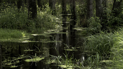 Какая очаровательная картина - плоскость воды, трава и стволы деревьев - очень нравится !!!