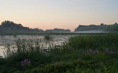 рассвет,озеро,лето,туман