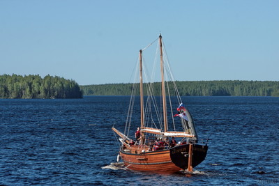 Онежская жемчужина... где то на просторах Карелии.........Экспедиция проводится под эгидой Русского географического общества на средства гранта, который получил Вологодский госуниверситет....судно было построено воспитанниками кадетской школы «Корабелы Прионежья» при участии сотрудников Арктического спасательного центра «Вытегра». |