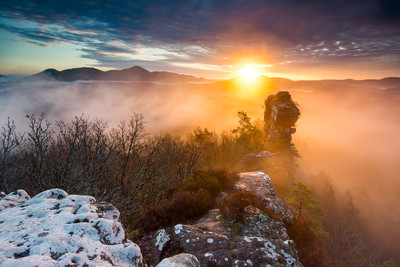 Без названия Was für ein Morgen auf dem Geierstein im Pfälzerwald. Man hat nicht all zu oft, das Wolken und Nebel gepaart mit Sonneaufgang gleichzeitig da sind. Normalerweise schließt das eine das andere aus. Aber an diesem Morgen war alles perfekt. |