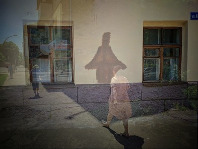 прямо здоровская! Либо это портал в иные миры, либо предыдущая прохожая прошла сквозь стену - и это всё, что от неё осталось.