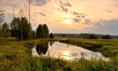 Августовским тёплым вечером солнце нежится в воде