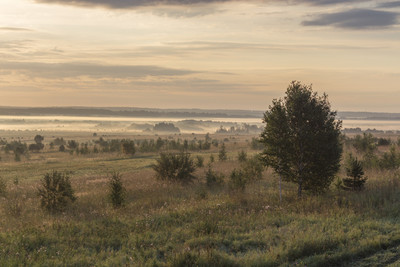 Раннее летнее утро, в долине еще не рассеялся туман.