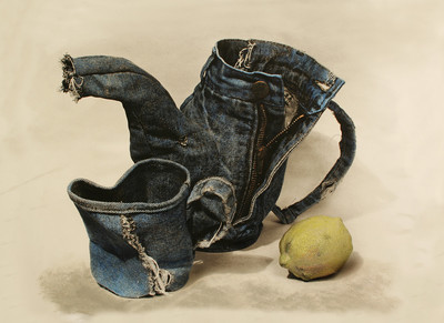 гениально! вот это джинса понимаю! а что не вижу ножа, вилки и ложки, и почему лимон из другого материала?:)) в любом случае, жту инсталляцию любой музей современного искусства с удовольствием купит. я серьезно!