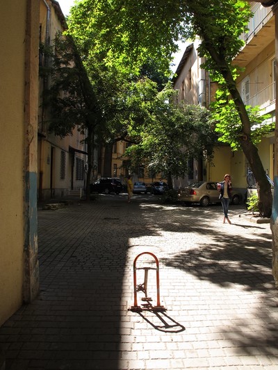 - добавляет печальную нотку в кадр. (шучу - хороший дворик,южный такой.)