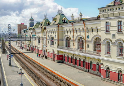 Железнодорожный вокзал Владивостока Первоначально это было каменное здание с железной кровлей, в средней части одноэтажное, по краям — двухэтажное. Полы в здании были выложены глиняными японскими плитами. В 1910—1912 годах, в связи со строительством Ярославского вокзала в Москве, вокзал во Владивостоке по проекту гражданского инженера В. А. Плансона расширили и надстроили по образу и подобию Ярославского, создав на обоих концах транссибирской железнодорожной магистрали архитектурно законченные станции. С 1924 года облик здания стал постепенно меняться: был снят двуглавый орёл, под слоем штукатурки исчезли мозаичные панно с гербами, рельефные изображения из поливной керамики на русские фольклорно-сказочные сюжеты. Цвет фасада сменился с жёлтого на зелёный. В 1936 году интерьеры вокзала были расписаны художником Г. Григоровичем, а через двадцать лет В. Герасименко расписал кассовый зал, создав там панно «Наша великая Родина». В семидесятые — восьмидесятые годы XX века наружные стены были выкрашены в зелёный цвет. Реставрация здания, проведённая в 1994—1996 годах российско-итальянской фирмой Tegola Canadese, приблизила здание к дореволюционному виду. |