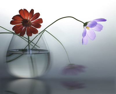 Может есть смысл сделать композицию только с одним цветком , стоящим и потом сломленным, с размытием и полупрозрачным . ну типа, жизнь и смерть. ?