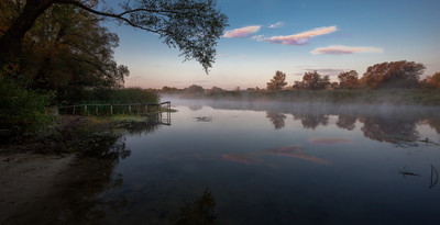 Красивая картина! "Скользит туман на зеркалу реки!"