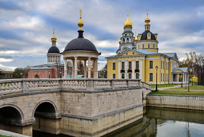 Рогожская слобода НА пп плане беседка-«Иордань». За беседкой на зп находится Покровский собор — главный кафедральный храм Рогожской старообрядческой общины. Собор сооружён в 1790-1792 годах выдающимся русским зодчим Матвеем Фёдоровичем Казаковым в стиле классицизм. За Покровским собором видна храм-колокольня во имя Воскресения Христова, возведен в 1906–1913 годах Слева от Покровского собора находится, Зимний одноглавый храм во имя Рождества Христова, построен в 1804 году в стиле барокко по проекту архитектора И. Д. Жукова |