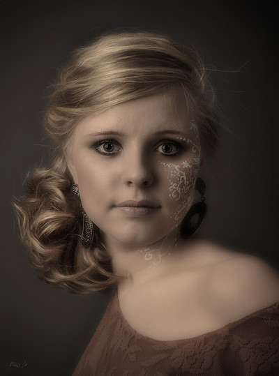 Портрет девушки с рисунком на лице.