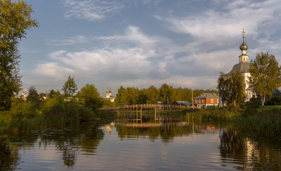 Анатолий Фомин, у Церкви Рождества Иоанна Предтечи. Между деревьев, почти по центру - собор, что на центральной площади, где торговые ряды.... а мостик так сделали, чтобы суденышко проплывало. На одном из снимков оно есть.