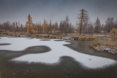 Тихий снег... Тундровые болота замерзают. Красиво.