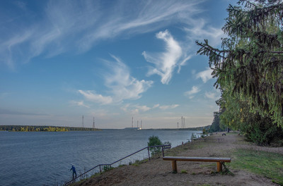Перистые облака над Волгой.