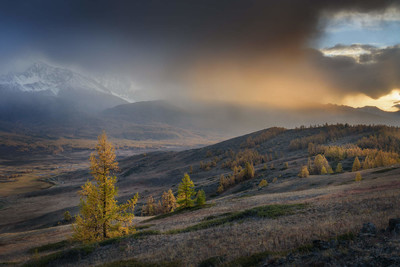В свете дождя Нечасто случается увидеть подобную небесную драму. Это был третий или четвертый за тот день заход дождя, который обходил по краю урочище Ештыкель, вылизывая горы. Периодически становилось тихо, ветер улегался, дождь переставал, чтобы через некоторое время начаться вновь, это было похоже на волны прибоя, то отступающие, то снова накатывающие на склоны и пики Северо-Чуйского хребта. Мы с мужем залезли повыше над озером Джангысколь и наблюдали сход белесых потоков, вся котловина была у нас как на ладони, а дождь едва долетал редкими каплями. Близился закатный час, плотные тучи, казалось, не собирались дать солнцу выйти попрощаться с горами. Внезапно пелена порвалась и сквозь стену дождя светануло теплым лучом. Это продолжалось около 15-ти минут, пока солнце окончательно не скрылось за склонами гор. Но именно такие небесные представления остаются и живут в памяти еще долго яркими образами. |