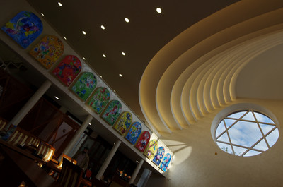 Витражи Шагала "Шатёр Давида" - первая новая синагога, построенная в Витебске за последние сто лет. Репродукции витражей Марка Шагала, которые он написал для иерусалимской синагоги Хадассы — Медицинского центра Еврейского университета – украшают новую синагогу «Шатер Давида» в Витебске. |