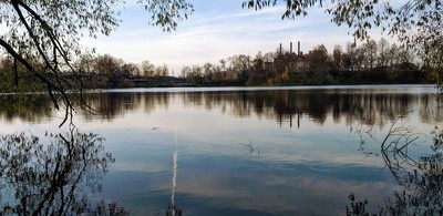 Глубока осень в нижней части снимка,но небо всё исправило и украсило свежестью работу!