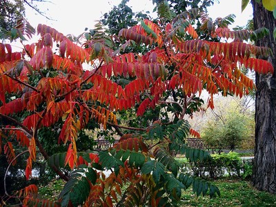 Сумах оленерогий, или еще одно название - уксусное дерево, очень декоративен по осени.
