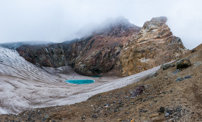Камчатка, сентябрь 2018 года. Юго-Западная воронка вулкана Мутновский с ледовой пробкой и озерцом!