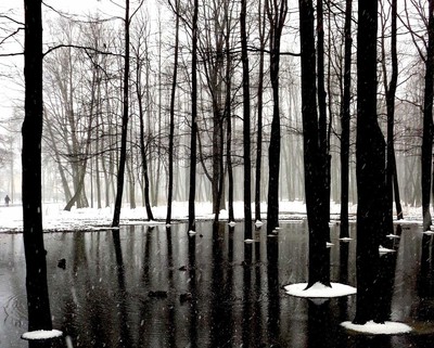 В ночь выпал снег, но утром сменился дождем... Образовалось озеро... И... пошел снег....