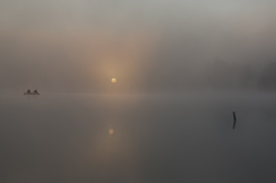 утро, рассвет, деревня, рыбалка, туман, озеро