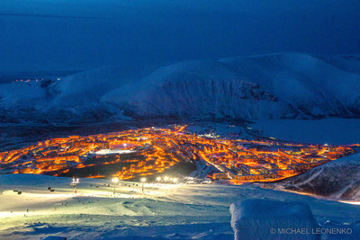 короткий зимний день, который не успев начаться рассветом, тут же переходит в закат дарит неповторимый свет. Город в огнях оранжевых ламп напоминает вулканическую лаву, вытекшую из недр.