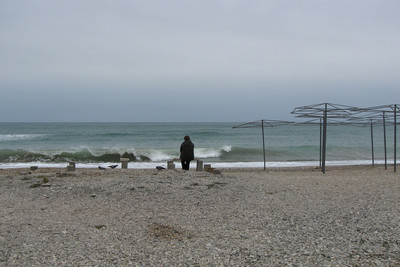 , а на бетонных пеньках летом стояла будка-бар... через пару дней и зонтиков не стало