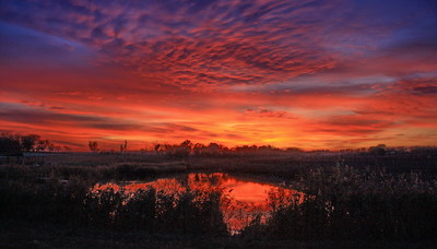 Горящие облака ,пруд...