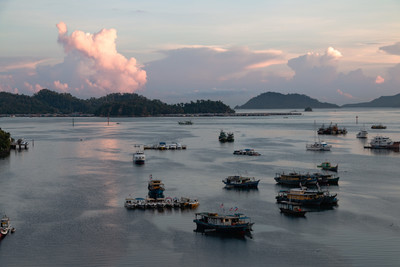 Рассвет. Первые рыбаки готовятся выйти в море.