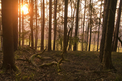 Закат в лесу.