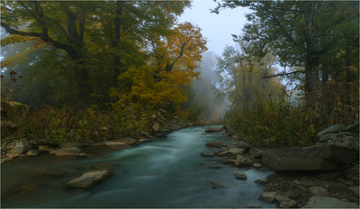Очень удачно показана динамика воды, которая, вместе с приглушенными красками, легкой дымкой и рассеянным светом, придает всему снимку атмосферу сна или воспоминания. Такие работы не бьют по глазам, они хороши для того, чтобы висеть на стене долгое время, когда глаз возвращается к ним и отдыхает на этих мягких красках осеннего пейзажа.