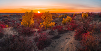 Золотые тополя на закате Буруны - волнообразные песчаные бугры, наносы. Красные кустарники – скумпия. Государственный природный заказник краевого значения «Степан Бугор». Конец октября, 2019. Фотопроект «Открывая Ставрополье». |