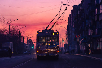 , хм, точно). А я и не увидел этого.. если не концентрировать внимание на собственно задней стенке троллейбуса - возникает эта иллюзия, как бы продолжение улицы с фарами машин