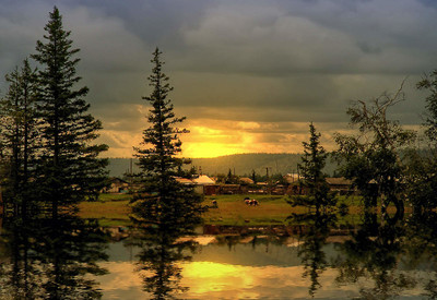 Красивая картина с закатом и отражением!