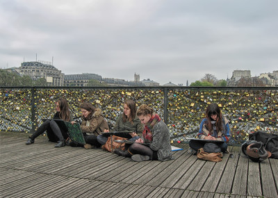 Художники Мост Искусств (мост влюблённых) в Париже. Снимок сделан очень давно. Мэрия французской столицы приняла решение снять сотни тысяч замков, символизирующих прочность любовных уз и закрепленных романтиками со всего света на мосту Искусств. По данным парижских властей, вес замков, украшающих ограждение, составлял 45 тонн. Демонтаж происходил в июне 2015 года. |