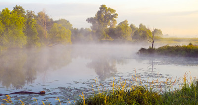 Летние, туманные рассветы на озере Омут, юго-восток Московской области.
