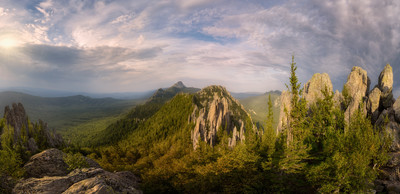 Хребет Большой Таганай. Южный Урал. Вид с южной вершины Двухглавой сопки.